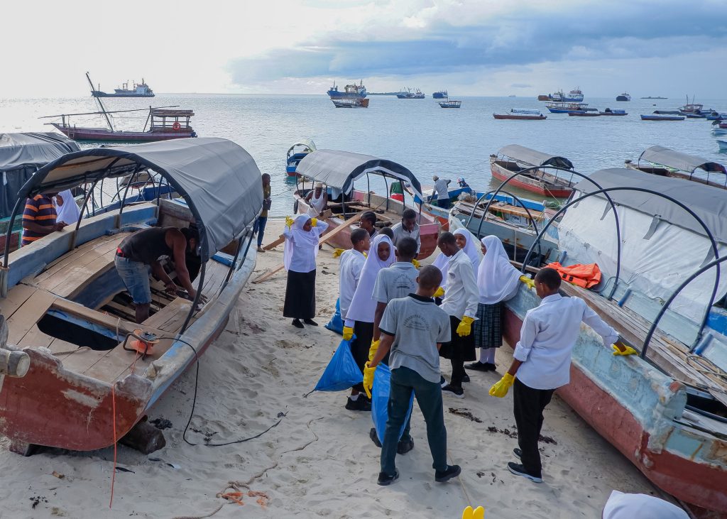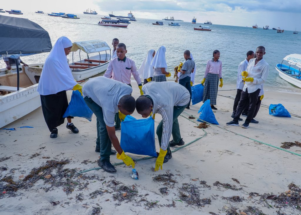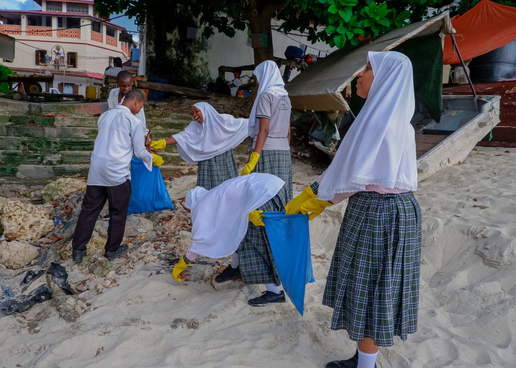 At the end of the day, we cleaned Forodhani beach with the students and group discussion on pollution and its impacts on the environment especially on the coastal environment.